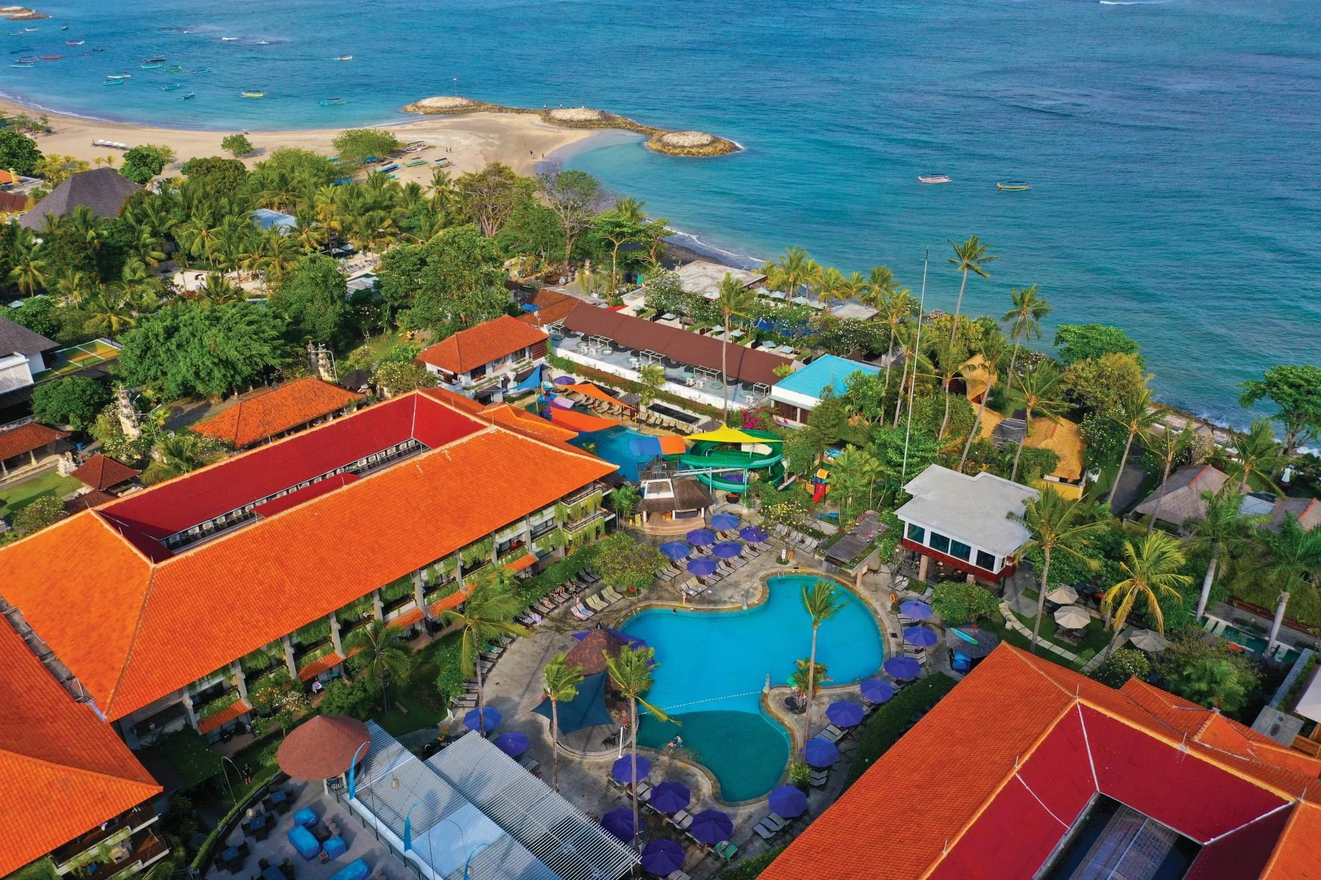 Bali Dynasty Resort is a premier 5-star beachside resort renowned for its genuine Balinese hospitality. Strategically located in South Kuta, Bali, the resort is just 10 minutes from Ngurah Rai International Airport. It’s also within walking distance of Waterbom, local markets, shopping malls, and a variety of dining and entertainment options. The excellent beachfront path allows guests to take a leisurely stroll or bike ride from Kuta to Legian and Seminyak beaches while enjoying the world-famous surf and breathtaking sunsets of Kuta Beach.