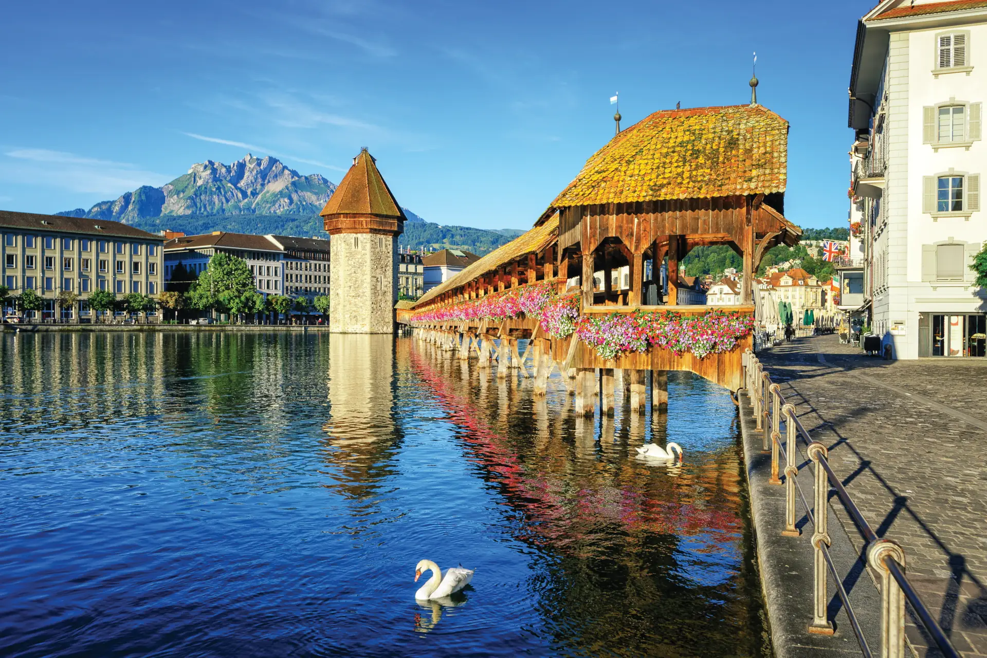 Your Travel Director will take you on an orientation tour through Lucerne’s Old Town. Walk along the ancient wooden Chapel Bridge and visit the Lion Monument, which Mark Twain described as the 'most mournful and moving piece of stone in the world'. Let the 'heart' of Switzerland capture yours as you immerse yourself in its history and epic scenery. With a full afternoon to explore this pretty lakeside setting on your own, you may decide to spend it shopping for watches, Swiss army knives orchocolate. You could choose instead to ascend to the alpine heavens, joining an optional scenic cruise across Lake Lucerne to Stans, then travelling by railway and cable car up into the mountains for exhilarating mountain views.